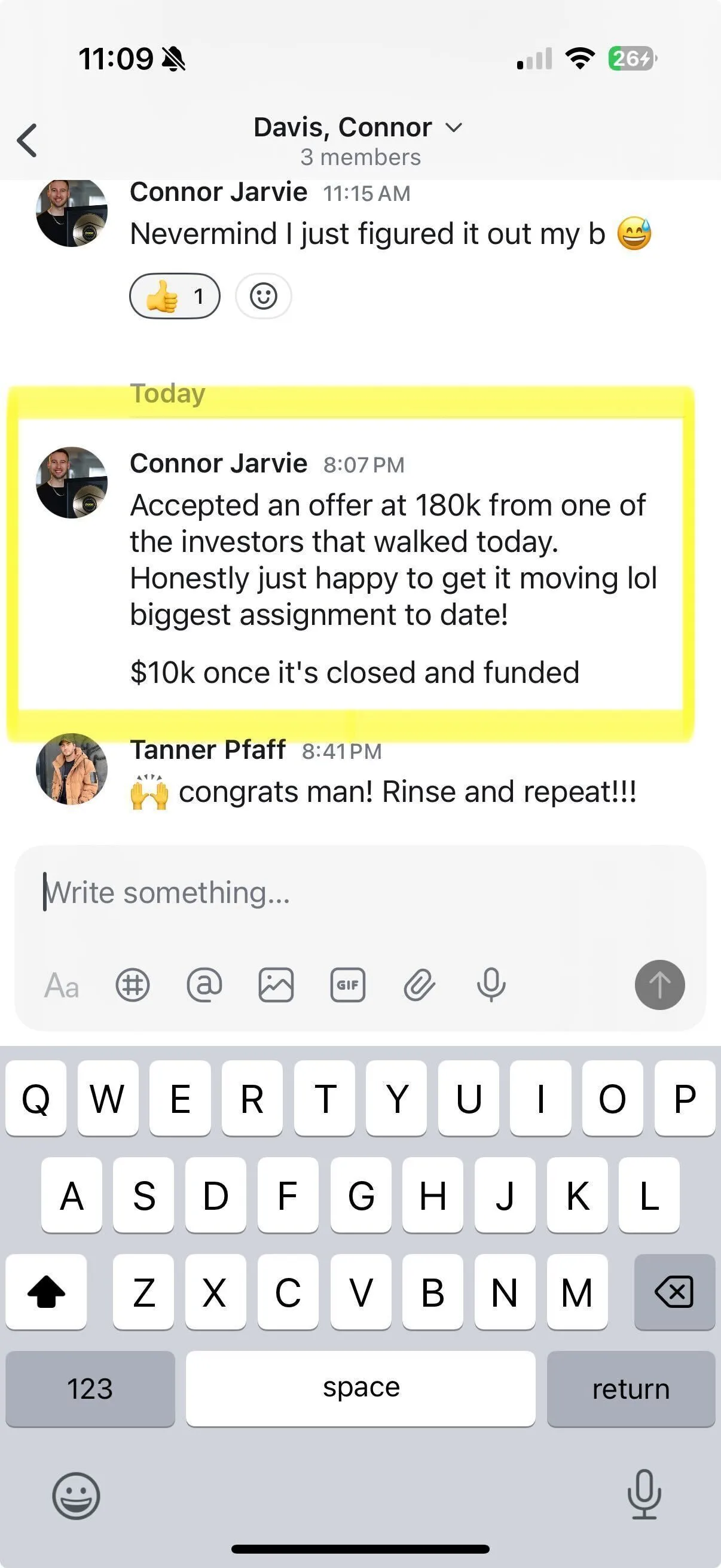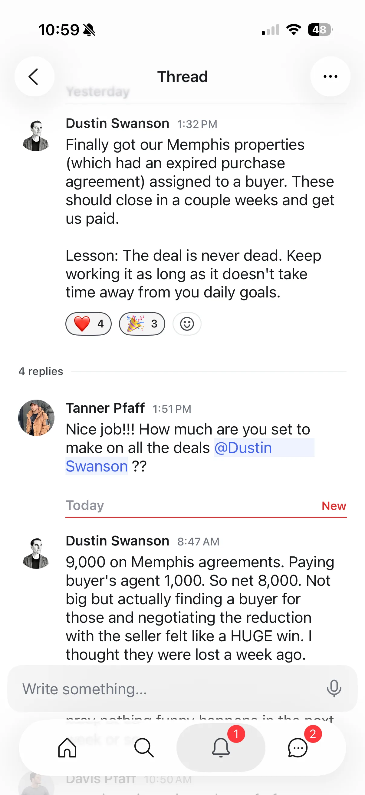 "Our first assignment fee within 30 days, we hit about 43k I think. It was a nice payday and it definitely motivated me that I was in the right game"